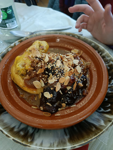 The restaurant is located next to the cathedral offering a spectacular view from the terrace. The tables on the terrace are nicely decorated and all tables were covered with a nice cotton table cloth. The presentation is promising. The lady waitor was polite and efficient. She was straight to point and knew all dishes on the menu. We have ordered a Couscous Royal and a Tajine chicken with lemon confit 🍋 As a dessert we took an assortment de délices orientales. The couscous royal got served with different kinds of meat, lamb, chicken, merguez and of course some vegetables and Harrisa. The Tajine was accompanied with patates. The Tajine was very tasty, the taste of the confiit lemon with the chicken and patatoes was great. It was definitely a good choice. The couscous royal receive an extra boost when you added some Harrisa. For my taste it was lacking a bit of a punch. The dessert was a plate with numerous oriental sweets. Most of them were done with fleur d'oranger, the typical flavour. With some coffee and tea an excellent finish. The restaurant gets my full recommendation because of an efficient, polite and fast service, great oriental food at a real great price. The price quality ratio is definitely fantastic! If you want to eat some great oriental food in Metz for good money, La Baraka...