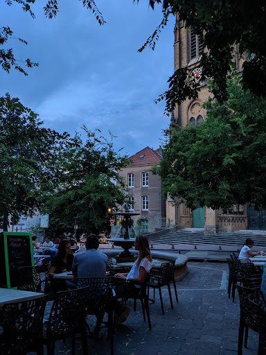 Read moreC'est un des lieux où je préfère me perdre. Je m'y rends depuis nombre d'années, mais pas aussi souvent que je le voudrais malheureusement. Rien de tel qu'un moment en terrasse en été pour dessiner en écoutant le bruit de la fontaine. Et l'hiver en intérieur avec une musique toujours de bon goût savourer un chocolat chaud en bouquinant un peu. Sans prétention, simple mais bon et chaleureux. Le patron autant que le personnel ont toujours su être accueillants et souriants. Possible de faire livrer du miam pour rester encore plus et profiter du calme ou bien de certaines soirées à thèmes suivant les occasions. La décoration atypique de cet illustre bar en fait un lieu d'exception qu'il faut préserver dans cette belle ville de Metz. Au plaisir de revenir travailler au coin d'une de vos tables...