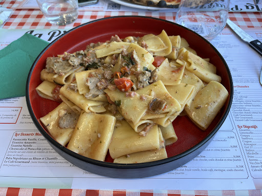 Read moreNous sommes clients habitués, ce soir c'était très particulier pour notre dîner, nous avons réservé pour 20h30 on arrive à l'heure, on passe commande pour trois pizzas, et puis 21h arrive , toujours rien on constate que des tables se remplissent à côté de nous, qu'ils se font servir leurs plat, biza ! les serveurs passent et nous regarde depuis un moment, il est vrai qu'on passer une agréable soirée en famille après un confinement nous étions dans un bonne état d'esprit détendu , ils y avait du monde, on c'était dit qu on commencer à avoir très faim et juste quand mon époux aller avertir un serveur, c'est lui qui vient vers nous en nous demandant se que l'on attendait, nos pizzas lui dit on ! Il nous demande depuis combien de temps que l'on attend, il était 21h 45, ça fait 1h, la salle du restaurent se vide à une vitesse et oui 22h le couvre feux, nous recevons nos plats très rapidement avec les excuse du serveur, il nous offre les desserts et l'apéritif sympa, sauf qu'ils on était faturés, mon maris n'a pas fait gaf, SAUF que ma pizza était à peine tiède,(trop faim pour réclamer,) cette de mon maris, noir de chez noir,la j'ai demander à en avoir une autre,( cancérigène) une jeune femme aimable vient s'excuser à sont tour, ns propose un digestif offert, c'est déjà fait lui dit ton, je lui demande ce qui c'est passé, elle me dit que c'est un nouveau pizzaollo et qu'il n'a pas l abitute avec les commandes du restaurant et à emporter, (je comprend ma pizza tiède) pas de soucis lui dit ton car nous passons toujours de bonne soirée quand on vient chez eux, puis un autre serveur passé et nous propose de prendre pour lui, donc de nous offrir les desserts, (ils on dû se passer le mots qu'il y avait eu un problème à cette table) , au final nous avons pris 3 boisons, 3 pizzas, 3dessers,1/4de rosé et somme sortit à 22h30, 80 euro facturer en cadeau 1/4 de rosé en plus et un digestif, dommage pour nous. Bon la prochaine fois sera la bonne, après nos vacances on reviendra et le nouveau pizzaollo sera plus compétant , bon courage à toute l'équipe...