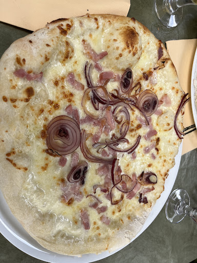 Nous étions de passage pour le travail, les avis étant partagés nous avons décider d’y aller pour le déjeuner et vérifier les dires, aujourd’hui je peux vous confirmer les avis négatifs . Arrivés vers 12h30 le patron nous propose de nous installer en terrasse. 20 minutes plus tard toujours pas servis, on n’a pas prit notre commande même pour une boisson. D’autres personnes arrivent après et s’installent à côté et je me rend compte qu’ils sont servis avant nous , le patron arrive enfin! Il nous demande ce que l’on désire en boissons, je lui répond que l’on attendait il me répond « mais madame vous êtes arrivés les derniers » alors que c’est faux , ces « voisins » ont finis de manger alors qu’on n’a pas commencé ! Il reviens et on prends 2 salades vosgiennes « ha désolé j’ai oublié de vous dire je n’ai plus de salade « 😳du coup on prend chacun une pizza ( j’avais vue d’autres personnes qui en avait prit et elles étaient servies avec salade) Nos pizza arrivent, pas beaucoup de garniture et pas de salade !! Il fait des plats à la tête du client je pense et la notre n’a pas dû lui revenir 😁 12€ la pizza , elle ne la vaut pas , service trop lent , patron désagréable, tarif trop élevé, passez votre chemin, moi je passerai le mien, j’ai trouvé beaucoup mieux mais trop tard, ce sera pour mon...