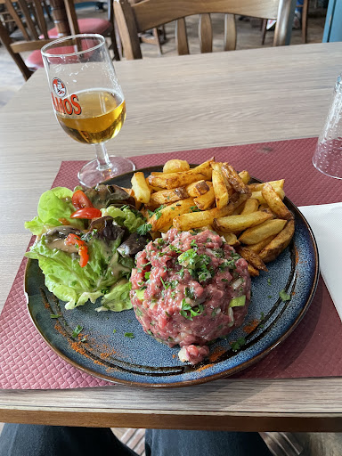 Repas copieux mais viande un peu grasse. Prix correct. Malheureusement, pas de chance, nous sommes arrivés juste avant leurs congés annuels et donc un plat n'était plus disponible (escalope de veau à la milanaise) et ne restait plus qu'une portion de frites (nous étions 3). Heureusement, leur viande de boeuf était bonne, bien que pas mal grasse, tout comme les courgettes poêlées qui l'accompagnaient. Je ne souhaitais pas la sauce gorgonzola en accompagnement mais on me l'a quand même apporté (à côté heureusement) et on ne m'a pas proposé une alternative. Le pain était de piètre qualité, comme ceux parfois vendus en supermarché. La serveuse était stressée, donc pas très agréable, on a dû la relancer pour les boissons. Le barmaid était sympathique par contre. En fin de service, on sentait que la serveuse était un peu pressée de débarrasser et d'être...