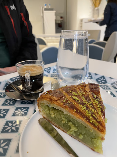 As you see you I give them 4 stars for the cuisine,yet I was disappointed.let me tell you my story. It starts with me enjoying my walk between these beauutifl old building, little shops, tables of restaurants and coffees everywhere đđ„° suddenly the blue color took my attention, even more the people who lined up outside le salon bleu waiting for their turn, so of course I had to take a look inside, I entered Scan so quickly what they have, then here is it the art pieces pistachio croissant đ„đ„, memories jumped up in my mind of the most delicious croissant I ever had in Nice, I took my place with the other ,I waited,and waited and waited then ; bonjour đ,she said , bonjour đ I said,I would like to have on pistachio croissant please. That's all, she said. Yes please,I replied. Oh my god I can't wait to eat it. I pay for it then I took off.đđđ I start looking for a quiet place to enjoy this piece,I found a chair, I opened the package I smelled it ,I took a bite but it was noooot what I expected đđ¶ unfortunately was not that good , the pistachio cream was sooooo sweeet and it tastes weird not a pistachio at all...I'm not not saying the products are not ,iam just telling my experience. So I think you should reconsider the pistachio croissant recipeâșïž I hope you...