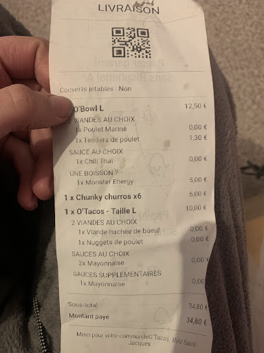 Read moreQuel désastre… Otacos n’est plus que l’ombre de lui-même. Avant, on venait avec le sourire, on repartait le ventre plein et le cœur léger. Aujourd’hui, c’est une déception cuisante. Les prix flambent sans vergogne : le tacos M qui coûtait 6€ passe à 6,50€, la minuscule bouteille d’eau grimpe de 1,80€ à 2,10€ (on dirait presque qu’ils vendent de l’élixir rare). Et pour couronner le tout, nos serveurs préférés ont disparu, remplacés par des gens froids, sans un bonjour, sans un sourire, comme si le client dérangeait.