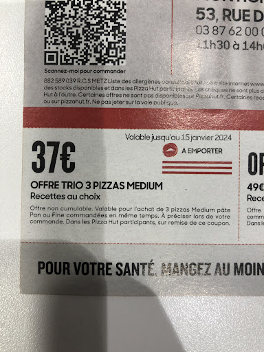 Je recommande vivement pizza hut à Montigny les Metz mais pour la qualité des produits, pas pour...