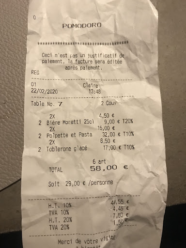 I had lunch at Pomodoro with my family for the first time and we all enjoyed our experience. I had first heard about this restaurant in New York, on Instagram and was curious to try it the next time I would be in my hometown of Metz. The pizza was delicious and fresh and the staff was friendly. This restaurant is spacious so you don't have to worry about social distancing in the time of the pandemic. It is also located near many shops which is great. I highly recommend trying...
