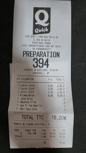 Manager moqueuse et non professionnelle!!!! Une honte!!! Si j'avais pu mettre 0 je l'aurais fait. Alors la personne à qui j'ai eu à faire ne représente pas l'ensemble du personnel mais étant la responsable le soir de cette mésaventure ( 12/09/22 vers 21h) elle représente le Quick de metz borny et d'une façon déplorable.