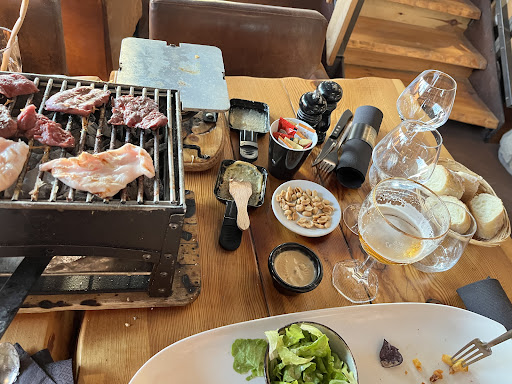 Read moreNous en sortons !!! Et franchement la nourriture est bonne mais quand service les serveuses ça laisse vraiment à désirer en entrant on arrive sur un comptoir on demande une table pour 3 on nous pointé du doigts un endroit avec une table et on nous dit installez vous la bas Mouais ok en principe on accompagne les personnes à table mais ok La commande est prise pas de souci une mini raclette pour enfant et une braserade pour 2 la serveuse revient avec un 1er appareil pour la mini raclette et ensuite avec un appareil pour la braserade forcément ça prend de la place à table mais naturellement pas assez de place à table et pourquoi ?? Et bien nous sommes 3 le 4ème couvert pourrait être enlevé par la serveuse, nous ne buvons pas de vin alors la serveuse pourrait enlever les verres à vin aussi mais non, notre apéritif est terminé elle pourrait débarrassé les cacahuètes qu’on ne mange plus mais non, donc assez le bazar à table que je trouve ça assez inadmissible !!!!!! Et quand au mot s’il vous plaît, merci la serveuse ne connaît pas non plus…. Et bien sûr y a dire sur le petit matériel des appareils comme par exemple les Poêlons de raclette ils sont tellement usés que lorsque vous voulez mettre le fromage dans votre assiette tout le fromage reste dans le poêlon on arrive même plus à décoller le fromage !!!! Voir photo Je peux comprendre le manque de personnel, ou les jeunes en job d’été juste là pour 2 mois…. Mais je ne comprends pas qu’on ne leurs donnent pas quelques leçons de savoir vivre dans la restauration !!!!! Et ensuite faut aussi m’expliquer une autre chose lorsque je m’assoie à table je vois à côté de moi une affiche ou je lis « ne rien placer à moins de 50 cm devant cette grille de ventilation « alors que j’y suis très proche !!! Voir photos Bref très déçu par cette ambiance froide mise par la serveuse et par son mauvais...