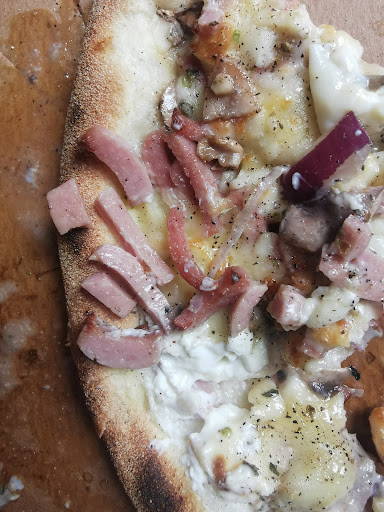 j'ai beaucoup apprécié cette pùte originale (bien qu'à peine trop fine parfois, pouvant créer des trous d'obus dans la pizza (sans les obus((