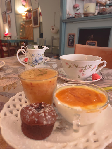 Je me suis rendue Ă Affini ThĂ© aprĂšs que mes parents m'ont recommandĂ© ce lieu. Ils ont eu raison de le faire. Avec une amie, nous avons pris une formule assiette gourmande (vĂ©gĂ©tarienne) + dessert. L'assiette Ă©tait composĂ©e de salade, d'une soupe de lentilles crĂ©meuse et d'une gaufre salĂ©e, le tout Ă©tant dĂ©licieux et parfaitement assaisonnĂ© et les portions gĂ©nĂ©reuses. Le dessert, un fondant au chocolat Ă©tait tout aussi excellent. La nourriture proposĂ©e est saine, savoureuse et de qualitĂ©. En plus de ce sans-faute sur le plan culinaire, le service est exceptionnel. Aimable et attentive, la gĂ©rante rend l'expĂ©rience trĂšs agrĂ©able. L'ambiance feutrĂ©e et la dĂ©coration vintage rendent l'expĂ©rience parfaite. Ainsi, Ă mon tour, je vous recommande vivement ce lieu. Attention toutefois Ă bien rĂ©server le matin mĂȘme car Affini ThĂ© affiche souvent complet (comme...