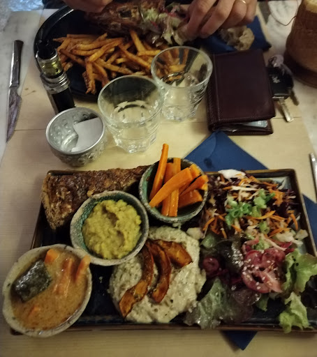 Lovely little restaurant in the heart of the Couvertoirade, atmospheric and charming, with open grill inside and garden seating outside. Friendly family-style service, the food is fresh, home-cooked, and clearly prepared with a lot of thought and care. Mezze starters were particularly delicious and unusual, and mains were excellent. We loved the crockery too! Definitely recommended if you are...
