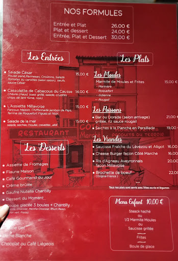 Read moreUn vrai bonheur j’y suis allez deux fois j’étais accompagné de ma mère qui est fan de moules frites, les sauces d’accompagnement sont très bonne et bien consistante pas du tout rallongé la première fois j’ai pris une pièce de bœuf la viande bien cuite très bonne , la deuxième fois une salade en entrée avec un fromage de brebis chaud j’ai trouvé ça très bon et original après un aligot très bon assez léger qui ne baigne pas dans le gras une saucisse pas grasse et aussi bonne que les plats précédents .Après un bon plateau de fromages et un succulent dessert une gaufriteroles même le café et bon et toujours dans l’originalité accompagné d’un carambar je précise que je suis un gros mangeur et la c’était de la gourmandise et non la faim . Le cadre et la vue sur la place est sympa, les menus sont simple vous ne chercher pas pendant deux heures pour trouvé ce que vous voulez manger et le service et plutôt rapide les serveurs sont souriant et sympathique le patron sympa et serviable et la patronne un soleil toujours drôle et très sympathique et honnête en plus toutes les qualités , ayant pris entrée plats fromages et dessert elle a placé le dessert sur le menu de ma mère qui n’avait pris qu’un plat pour que je puisse passer sur deux menus au lieu de plats individuels C’est officiel ça deviendra ma Cantine quand je passerai par millau. Encore un grand merci à toute l’équipe pour ce moment dans cette...