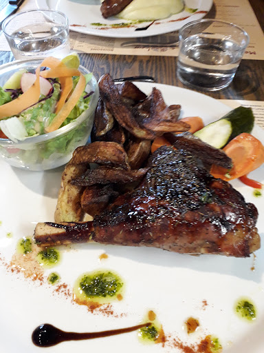 Notre serveur, hispanophone, mais très à l’aise en français, prend nos commandes. Tout se déroule à merveille. Les entrées arrivent au bout d’une vingtaine de minutes. Tout est délicieux, la cuisine peut être félicitée. Vient alors une attente… une longue attente… d’une petite heure. Oui, une heure d’attente. Les plats arrivent (enfin), c’est très goûtu, l’aligot est très bien maîtrisé et la viande exquise. Rien à dire sur les desserts, ils sont fait maison.