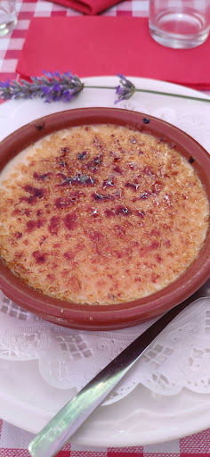 La ratotuille bastante generosa y con mucho sabor. El Magreb de pato excelente acompañado por un pastel de patata, judías, ensalada y una salsa riquísima de mostaza y miel. Toda la comida casera y muy abundante. De postre elegimos la creme brulee con sabor diferente al habitual, quizás con cierto gusto de la crema a almendras? No sabría decir. La cobertura de caramelo fina y bien quemada. Como no había nadie ya fueron ágiles sirviéndonos. En resumen: puedes comer más tarde de las 13.30 que normalmente todo está cerrado. Comida casera, trato muy agradable y buena relación...