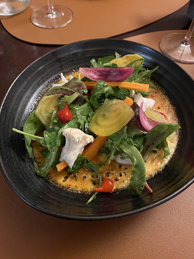 Read moreExpérience sensationnelle dans ce restaurant ! Tout d'abord, la réservation où c'est le chef en personne qui m'a répondu, d'une grande amabilité ! Le ton était déjà donné. Ensuite, le cadre, merveilleuses voûtes en pierre, avec une décoration sobre, reposante et de très bon goût. L'accueil ,lorsque nous sommes arrivés, a été fort aimable de la part des serveurs , pourtant déjà occupés au service et ensuite, service parfait tout au long du repas . Un excellent champagne pour l'apéritif, accompagné d'une mise en bouche aérienne à la dorade. Des rougets avec huile au homard, oeuf brouillés avec glace aux cèpes pour les entrées, tout cela d'une infinie délicatesse. Assiette d'agneau confit et assiette de boeuf mariné pour les plats, d'une saveur incroyable et dont les viandes étaient d'une tendreté sans nom. . Pour les desserts, déclinaison de chocolat au thé matcha, d'une grande légèreté et onctuosité et des petits cannelés en fin de repas pour le café .Un service impeccable avec un serveur parfait qui connait parfaitement son job et visite du Chef en fin de repas pour venir vous saluer et qui répond avec une grande gentillesse à vos questions culinaires. La carte change tous les 4 mois environ et honnêtement, cela vaut très largement le détour ! Je...