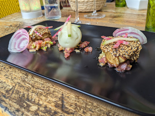 Bien cuisiner dans le sud-ouest, ça commence par de bons produits. Case facilement cochĂ©e pour ce restaurant qui se fournit chez des producteurs locaux. Cependant, beaucoup de restaurants s'arrĂȘtent à ça. Pas ici. Le foie gras poĂȘlĂ© (en photo) est original, avec sa glace et ses bouts de pomme qui ramĂšnent de la fraĂźcheur et de l'aciditĂ©, sa friture avec graines de pavot pour le craquant. MĂ©rite d'ĂȘtre un classique ?
