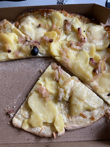 Pizza trĂšs bonne, une pĂąte excellente. Un accueil trĂšs chaleureux. Seul bĂ©mol qui fait ma dĂ©ception est les 5 lardons qui se battent en duel sur ma pizza (voir photo). Dommage petite dĂ©ception.. jâai clairement mangĂ© des parts juste avec pomme de terre et fromage .. loin dâĂȘtre une vraie savoyarde :/ mis Ă part ça le reste est ok.