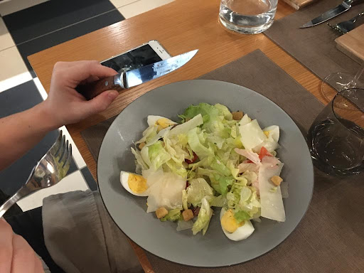 Une salade disposée comme si vous rentriez du boulot fatigué de votre journée et sans envie de cuisiner. Cette salade de 13€ est horrible au visuel sans couleur ni saveur. Je suis infiniment persuadé que vous et moi, pouvons faire bien mieux pour 2 fois moins cher. Les ingrédients ? De rares morceaux de fromage et de poulet aussi fins que votre feuille d'imprimante. Et à notre grande surprise (sûrement celle du chef), des anchois ont rejoint la petite famille. Bref... une salade comme celle-ci n'était pas bonne du tout pour un restaurant de ce standing. Donc pour nous si ils ne savent pas faire une salade, vous imaginez le reste ?