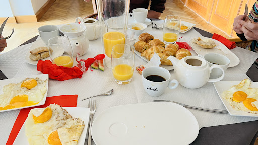 Read moreLa Belle Vue is a small and charming hotel located in the community of Saulxures, on the border of Alsace and Vosges. It's in a wooded and mountainous area. The building is contemporary with large glass parties (to enjoy the superb views) and lots of rustic wooden elements. It matches very well with its location. ||The hotel has 11 rooms in total , of which 4 standard rooms (33 m²) and 7 duplex rooms or suites (55 m²). All the rooms are nicely decorated, every room is different, with paintings (mixed techniques) and trompe l'oeil of the house-painter-friend Daniel Gerhardt.||Free wireless internet throughout the hotel.||Furthermore the Belle Vue has a gourmet restaurant. Guests can either book half board (an excellent 4-course meal and complementary cheese) or bed and breakfast and eat dinner à la carte. The halfboard dinners (19 euro) were good, the à la carte dinners (starting at 31 euro) were excellent.||Breakfast is a small buffet with home-made confitures (I loved the 'confiture de quetsches' while my husband preferred the 'confiture de coings à la vanille de Madagascar). Furthermore cheeses and cold meats, yoghurts, freshly squeezed orange juice, pain de campagne, croissants and viennoiseries. Hot drinks are freshly made on request (coffee, tea, hot chocolate, milk, ...).||||We booked one of their duplex rooms which consisted of a small entrée with dresser and minibar, a sitting area with a comfy couch and TV. A flight of stairs leads to the upper floor where, again, we had a sitting area with two armchairs, a desk, and a chest of drawers. Further in the room a super kingsize bed (2m x 2m) and a second TV. Ensuite a large bathroom with corner tub, separate shower, double sink and separate toilet. Luxury bathing products.||Double glazed windows on both floors, individually adjustable central heating for sitting/sleeping areas and bathroom. Everything was spotlessly clean.||Only negative point, in case you're a light sleeper (which I am), these duplex rooms face the church and the clock of the belltower jingles every quarter,...