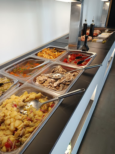 Read moreLa cuisine est bonne, le parmesan également, les lasagnes sont fondantes. Mais il y a un manque de choix à déplorer au niveau des pâtes : plusieurs choix de sauces mais un choix forcé de pâtes difficiles à trouver. Car le panneau indiquait pâtes aux fromages alors qu'en fait c'était les pâtes natures qu'on cherchait depuis 3 aller-retour au buffet pour accompagner les sauces proposées. J'ai été déçu de ne pas au moins avoir le choix entre des pâtes courtes ou longues. Sur des photos nous avions vues de superbes pana cotta sur le buffet avant de venir, un dessert emblématique au même titre que le tiramisu, on avait hâte d'y goûter. Nouvelle déception quand nous nous sommes rendu compte qu'il n'y avait ni l'un ni l'autre aux desserts, même si ce que nous y avons trouvé était bon. Choix avec du poisson assez inexistant, du moins lors de notre passage. Signalisation à développer ! Nous avions fait 5 fois le tour du rond point avant de nous garer derrière Gross comme l'indiquait timidement google maps. Le restaurant n'est pas visible côté route ni côté zone industrielle nous avions donc décidé de le chercher à pied. C'est uniquement comme cela que nous avions trouvé finalement le restaurant qui par chance est visible depuis le parking arrière de la boulangerie/pâtisserie. Pour finir c'est un buffet qui cale vite, donc pour rentabiliser le coût du menu on vous conseille de ne pas trop manger avant de venir, voir pas du tout si vous avez un petit estomac comme moi. Une bonne expérience qui reste assez mitigée, je ne sais pas si j'y retournerais. Cela reste à tester. Bonne...