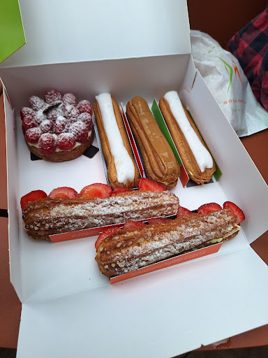Read moreNous avons faillit passer à côté... Au retour d'une visite au camps de Natzwiller, nous avons décidé de nous arrêter,par hasard, dans cette boulangerie, pâtisserie. Quelle chance, on a juste eu le temps de commander la petite restauration salé car la cuisine allait fermer... Le jeune homme derrière le comptoir a été vraiment très gentil, serviable, souriant et poli... Installés en terrasse, nous avons pu consommer notre repas tranquillement. Tout était bon: les salades, les mini pizzas mais surtout la patisserie! 😋.. Au comptoir il n'y avait plus de tartelettes au citron... le jeune homme est monté exprès à l'étage pour vérifier s'il y en avait encore malgré le nombre de clients au comptoir. J'ai eu la surprise de pouvoir en goûter.... une vrai tuerie!!!!! Merci beaucoup pour cette découverte!... Il est clair que si on repassera dans le coin, une halte sera obligatoire à...