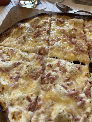 Read moreNous étions 4, l'accueil était sympas, la terrasse est bien tout comme l'intérieur les prix un peu élevés quand même, si on parle de la pizza et tarte flambée c'est les mêmes prix que centre ville de Strasbourg. Maintenant les plats. La tarte flambée est bonne, la pâte réussi et l'ail des ours un gros plus. Les pizzas c'est non, la pâte est sèche, dure, ce n'est pas une pâte à pizza c'est une biscotte dure. Les ingrédients, le jambon est 100% industriel bien rose et déjà en cube, le fromage un mélange gruyère industriel sans saveur n'espérez pas voir de la mozzarella c'est juste du gras sans goût en très grosses quantité les anchois c'est des filets à l'huile et citron ce qui n'a rien à faire sur une pizza. Les fleischkiechele à la crème,une petite portion rarement vu ça même devant la cathedrale de Strasbourg. La viande est sèche, la sauce fait avec un fond en poudre sans saveur. Les desserts profiteroles bah les choux 100% industriel sous vide, la chantilly pareil.. Au vu des notes nous pensions manger dans un bon restaurant de campagne mais très déçu au final . Je suis désolé mais je m'y connais bien en cuisine et là ce n'était clairement pas ça surtout...