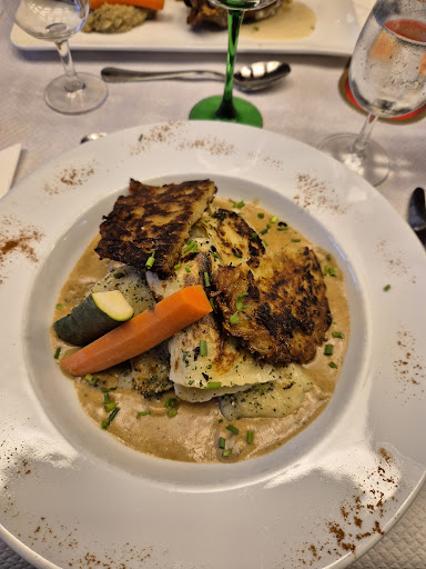 Bonjour nous cherchions un restaurant pas trop cher et bien tenu et bien nous n'avons pas été déçu le bon pêcheurs vous surprendra un décor tout en bois des poutres apparentes une déco pas trop chargée et bien agencé dont le thème semble être Les coq et tout leur entourage Pour ce qui est du repas nous avons pris un faux filet maître d'hôtel et son accompagnement qui m'a surpris puisque d'ordinaire ont vous Sert des frites ou des légumes à votre convenance et bien là vous avez de la salade des frites et de la choucroute avec une viande tendre du beurre maître d'hôtel fait maison semble t'il et un morceau de viande qui fait la largeur de votre assiette ma compagne elle a pris le menu du jour et a eu une bonne entrée de la salades avec pâte quiche lorraine petit légumes accompagné de vinaigre balsamique qu'elle a bien apprécié Endives au jambon en plat principal En dessert une coupe de glace café avec chantilly et un petit café moi en dessert j'ai pris également la coupe de glace parce que la glace viens d'un producteur local que j'avais déjà eu l'occasion de goûter et qui m'avait fait forte impression de part son goût et ses parfums A se propos tout les produits servi vienne de la région leur provenance et noter sur une ardoise sur le mur a l'intérieur de la salle j'ai terminé mon repas avec un thé vert tout cela ne serait pas aussi agréable si une gentille serveuse se prénomment Jennifer ne s'occupait pas des ses clients avec attention gentillesse et rapidité une deuxième personne s'occupe des boissons au bar pour compléter se service car en dehors des heures de repas cela fait également bar nous avons passé un agréable moment dans se petit restaurant pour une somme modique d'une cinquantaine d'euros je recommande et suis prêt à revenir manger la avec plaisir ..... Merci a tous pour ce...