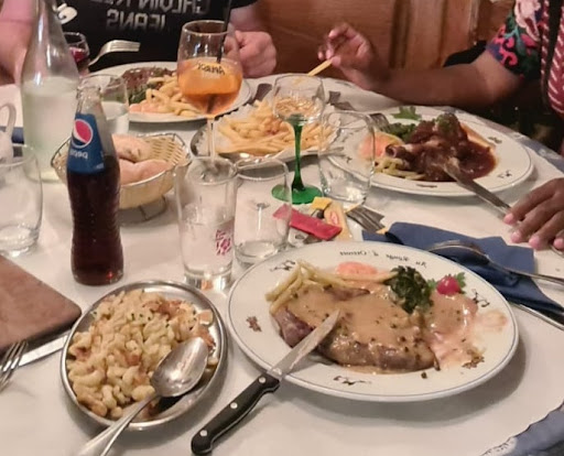 The service was good but just a caution for people like me who do not eat large portions of food .The menu has small and large salads but you can only order small size(is still a decident size ) if you have a main dish , the waiter made an exception for us but I did not like the fact that even my husband who had a main dish could not order a small salad for me to eat . The food is good but not exceptional and if I would have know their policy we would not have chosen that restaurant ,we did eat in France prior but never came across a...