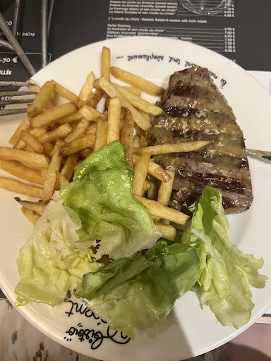 Read moreTout d'abord, je tiens à dire que le service est très bien organisé. Il est efficace, les serveuses sont souriantes et à l'écoute de nos requêtes; tout particulièrement Cathy qui nous a fait rire aux éclats durant la soirée, et m'a concocté une sublime glace aux frites et à la fraise. Par la suite, je tiens à souligner le fait que la nourriture est exquise et nous fait oublier le peu de choix disponible par rapport au plat principal. Je tenais à ajouter un élément, en soulignant un détail qui m'a particulièrement plu: la carte du menu est "double" et sert de nappe/set de table, cela permet donc de ne pas avoir à échanger les cartes, qui peut parfois être assez frustrant. Nonobstant, cette carte du menu est un excellent point à mettre en avant à mes yeux. Enfin, les frites maisons à volonté sont particulièrement merveilleuses (et qui le sont d'autant plus couplées à la sauce "charmélcia") et sont un véritable plaisir pour le palet. J'y reviendrai donc avec grand plaisir, au vu de la qualité de la gargantuesque entrecôte de...