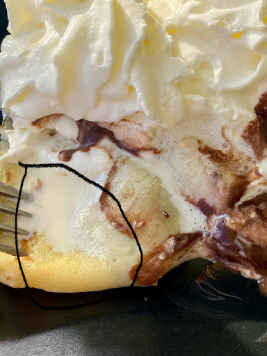 Read more1/ Table remplie de chocolat et autres traces de verres nettoyée uniquement à ma demande alors que l’on m’apporte ma commande Chaise dans le même état. Commande : Perrier tranche - crêpe chocolat chantilly avec boule de glace crêpe non cuite ( voir photo) mais le pire était venir bien coincé dans la boule de glace; long poil blanc congelé Perrier en canette et non en bouteille… Service rapide après la commande et agréable