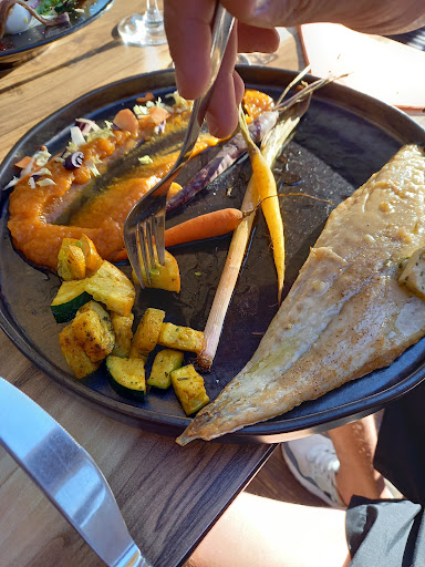 Read moreA FUIR un attrape touriste 👍🏻 Belle vue, un cadre sympathique.Cependant le personnel est aigris, non organiser et peu courtois. ( Sauf la jeune femme au cheveux bouclés) nous avons eu un serveur Mr Y.. qui gère la deuxième terrasse avec la patronne certainement. Il se trompe dans les commandes a deux reprises, me fou un coup avec les cartes en bois sur la tempe .. nous avons attendu 1h10 entre l'entrée et le plat.Et la patronne se permet de réagir à ce que l'on dit ou fait ( grimace pour ma part ). Enfin j'ai pris le menu du jour ( quantité pour un plat d'enfant avec 3 petits morceaux de poulet pour le work ) voir la photo. Et le thé gourmand ... Je vous laisse vous faire votre avis 2 petits truc un mini financier sec une verrine ultra acide aux fruits rouge CONGELÉ.. une assiette cassée.. du jamais vu en restaurant. Pépite on nous apporte les plats en décaler 10min d'attente pour les derniers,debarasse alors qu'on a même pas fini, et on nous pose l'addition en pleins dessert. C'est la fin de saison, la fatigue est présente nous comprenons l'attente cependant chacun choisit sont métier et ce n'est pas tolérable d'avoir un manque de professionnalisme. J'ai taché une veste en posant mes bras sur la...