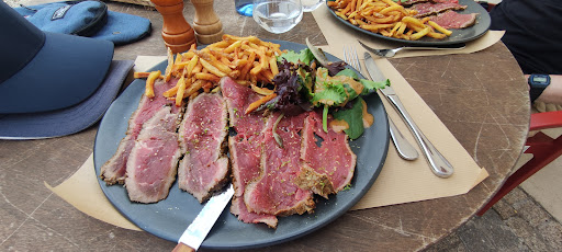 Read moreUne très belle découverte ! L'établissement est situé dans les anciennes écuries du général Lamarque, général d'empire, mort en 1832. Le cadre est très sympathique et la terrasse bien ombragée. L'accueil y est souriant et chaleureux. Le service est fluide et le personnel aux petits soins pour les clients. Maintenant, le plus important ! La cuisine... y est gastronomique. Cité dans le Gault et Millau, ce n'est pourtant pas le coup de bambou lors de l'addition. La carte varie à chaque saison, toujours exclusivement composée de produits du terroir, magnifiés par un chef à la cuisine vive, audacieuse, gourmande et inventive. Cependant, un plat est toujours présent à chaque saison, la spécialité de ce jeune chef, le Tataki de blonde d'Aquitaine accompagné de pommes frites à la graisse de canard... Un régal ! La viande de bœuf fond littéralement dans la bouche, les épices dans lesquelles elle a mariné ressortent à la dégustation et le zeste de citron vert qui termine le plat amène de la fraîcheur et sublime l'ensemble. Un excellent moment passé autour d'un repas parfait de A à Z. Établissement à ne surtout pas manquer si vous êtes...