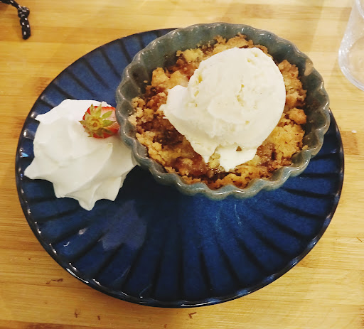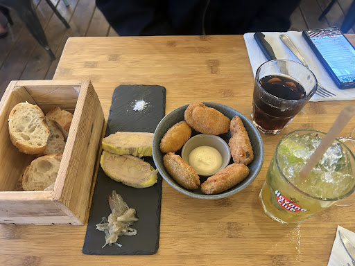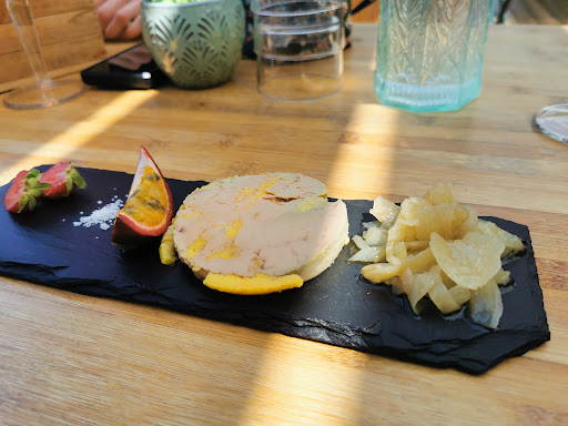 Dans la plus pure tradition Landaise. Un restaurant au style épuré à la déco toutefois atypique où l'on se sent comme à la maison. La cuisine... parlons en ! Un foie gras en entrée servi avec deux petits pains à température parfaite (ni trop chaud, ni trop froid), accompagné d'oignons confits agrémentés de fraises... un RÉGAL. Plat principal : Magret of course, made in Westcoast. Je m'attendais à un goût très prononcé, comme il est de coutume concernant le magret. À ma grande surprise, la viande tendre au possible présentait un goût que le chef a certainement cherché à atténuer jusqu'à atteindre une forme de neutralité dont les arômes ne se révèlent qu'une fois agrémentés d'une pincée de gros sel. Un goût en deux étapes en somme... vraiment surprenant ! Les frites sont faites Maison, of course, la base. La salade est sans chichi : goûteuse vinaigrette et du chou, easy ! Une assiette sans fioriture ou inutiles décos, ici, l'on est servi comme l'on se sert à la maison, juste droit au but. En dessert, un crumble où l'on ressent ENFIN le goût des pommes (véritable prouesse en restauration, nous sommes d'accord). Presque trop copieux pour moi tant les parts sont allégrement généreuses. Petit demi-pêche et verre d'eau pour accompagner le tout, vous l'aurez compris, la cuisine est paradisiaque, aux vibrations exceptionnelles, et je n'en fais pas trop. Une adresse que je recommande fortement pour celles et ceux qui souhaitent matérialiser la région dans une assiette, sans inutiles apparats. Un grand merci pour l'accueil et l'écran géant garantissant convivialité et ambiance pour les fans de retranscriptions sportives ou autres. L'on se sent chez soi, tout en étant chez les autres alors foncez ! J'aurais eu plus de sous ? J'aurais payé le double rien que pour le service. Un grand Merci !...