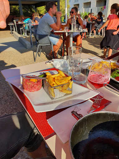 Read moreUne panne de friteuse qui nous a fait attendre une heure pour avoir un steak tartare et une entrecôte 😜😜😜.... Et du coup sans frite....une petite salade vinaigrette à la place (vous auriez vu la tête de ma femme 😅), mes enfants qui avaient pris un menu enfant avez déjà fini de manger et commençaient à ne plus tenir en place .... Au moment du passage en caisse j'ai demandé un petit geste commercial pour l'attente et le fait de n'avoir pas eu de frites ( même les serveuses étaient d'accord avec moi qu'il y a avait eu de gros ratés en cuisine en plus de la "panne" ) je me suis frotté au Pit bull qui tient la caisse à priori la responsable et là.... L'archétype du commerçant qui est toujours sourire quand il vous prend l'argent mais qui ne veut jamais rien faire lorsqu'il s'agit d'assumer des erreurs !!! Pour faire simple c'est moi qui ne comprenais pas qu'ils avaient tout fait pour que puisse manger ce soir...pathétique..... Sans blague !! Je vous passe le coup de la carafe d'eau, des toilettes degeulasses à souhait, l'attente de5 minutes avant que quelqu'un nous prenne en charge lors de l'arrivée ( trop occupé à plier les parasols a priori 😎😎 il était 19h15 nous sommes ressorti à 21 h ....) , heureusement pour ce restaurant qu'il vit principalement avec des gens de passage car il ne ferait pas...