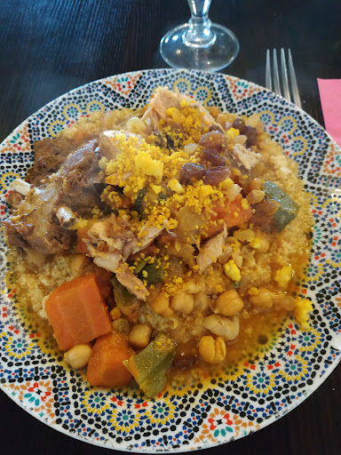 Nous avons passé un très agréable moment ! Bien accueillis dès l’entrée, on a pu choisir la table qu’on voulait (même une table pour 4 alors que nous n’étions que deux ce qui n’est VRAIMENT pas souvent le cas même si le restaurant n’est pas plein…) Les buffets (entrées, couscous, tajines, desserts) sont très variés et copieux. Le patron les réapprovisionne très régulièrement durant le service, ce qui rassure et permet de penser que les différents plats ne sont pas cuisinés en quantités industrielles et c’est bien pour ça qu’ils sont très bons ! En plus, contrairement à ce qu’on a l’habitude de voir dans les restaurants « type : buffets à volonté » les plats ne sont pas posés sur de grands bacs à réserve d’eau tiède mais chaque plat à tajine est posé sur la braise qui se consume doucement ce qui permet de manger chaud et c’est bien agréable. Pour couronner le tout, le patron est hyper sympa, il a beaucoup d’humour et nous a bien fait rire. Les clients présents étaient très sympa aussi et nous avons bien échangé avec eux. Bref que du plaisir, très belle expérience, nous reviendrons à coup sûr. Merci pour ce beau...