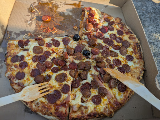 Auf Nachfrage wurde behauptet, wir wären nicht vor Ort gewesen, um die Pizza zu holen, jedoch saßen wir die ganze Stunde direkt davor am Tisch.