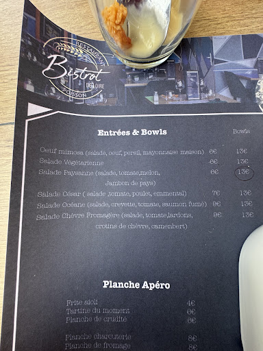 Read moreDe passage rapide sur Gien, nous avons voulu profiter de la terrasse sur la Loire dans ce bistrot bien noté. Franchement, je suis persuadé que les commentaires sont faux .... Nous avons pris 2 salades Caesar et 1 salades de chèvre. .. Le cuistot a oublié de mettre les toasts de chèvres sur la salade de chèvre (un comble) qui était surtout une grosse salade verte avec quelques minuscules et quasi-invisibles lardons allumettes. Les salades Caesar étaient les pires de notre vie. Au dela des libertés prise avec la recette originelle et des grains de gros sels surprises entre les feuilles de salade, pour 14,50€ c'était famélique ! On a compté:12 grains de maïs, 1/4 de tomates, 1 olive, 6 morceaux de carottes et 3 miniscules bout de poulet. La serveuse a été bonne joueuse et nous a offert une partie de la note, mais ça pue l'arnaque...