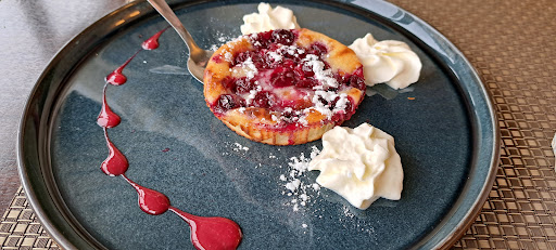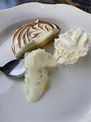 Nice place on the pavement outside the church. Went for Sunday lunch. Menu fix 21.50 euro 3 courses, 19 euro 2 courses. Arrived at 1.00pm and already half the dishes were sold out. We had Lasagne with a side of chips and the chicken supreme. Lasagne portion was Very small, and chicken not much better. We only has one dessert. A hot apple tart which was great. Service was good, and with a glass of wine and a bottle of water the total was 52 euros which I thought was a bit expensive for...