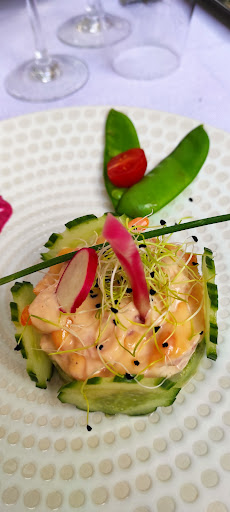 Read moreUn accueil très sympathique et une prise en charge sans attente. La carte est très soignée et le personnel très compétent. Les plats sont travaillés et bien décorés. Le lieu manque de décoration c est un poil tristouille.quelques points négatifs: La salle de restaurant n est pas insonorisé et cela devient très vite assourdissant. Il n' y a pas de climatisation et il y fait très chaud. J étais en présence d une table dont les occupants semblaient connaître "la maison". Ils rentraient et sortaient des cuisines sans discontinuer en ne respectant aucun geste barrière de plus ils parlaient très fort et les serveurs ont laissés faire.c est dommage car cela a sûrement affecté mon appréciation globale. Mais tout était quand...