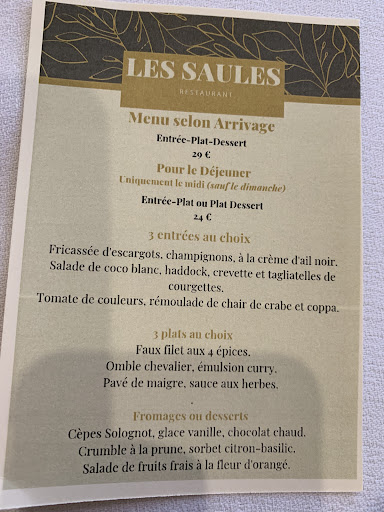Read moreLe 19 mai nous avons fêté en famille l'anniversaire de ma maman au restaurant Les Saules , et je pense donner l'avis général des 30 personnes présentes au repas : tout était parfait, le repas, le service, l'ambiance et pas tout a fait le temps (mais le restaurant n'y est pour rien), quoi que, puisque nous avons passé une partie de l'après midi en terrasse au soleil. Une mention particulière au chef qui est venu nous voir avant le début du repas pour nous informer d'un changement sur l'entrée et nous a demandé notre avis, au service qui a été aux petits...
