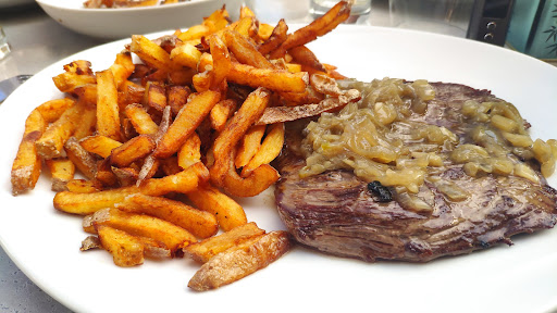 We enjoyed a delicious lunch (3 burgers, fries, salade composée, nuggets, soft drinks, coffees) for 2 adults, 3 kids for €53. Kid friendly. It was recommended to us by staff in La Fee Gourmande, our original lunch destination that day. Added bonus was their super air conditioning system on the terrasse when puffs of cold water vapour were released on us as we...