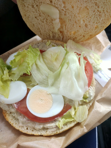 Pour preuve : un sandwich fade, sans plus d'assaisonnement (huile, vinaigre, épices) une espèce de crème au thon, sans le goût de thon. On s'attend plutôt à des morceaux de thon en boîte à minima, une belle feuille ou deux, de laitue ou feuille de chênes, un peu de fromage ou câpres, cornichon, etc.