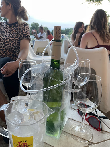 The whole setup is beautifully designed: soft sand under your feet, stylish white tables, cozy seating, and an open-air vibe that makes you feel like you’re on vacation, even if you’re just a few minutes from town. The music sets the perfect mood — a live DJ keeps the energy flowing with chill beats early on and dance tracks as the night goes on.