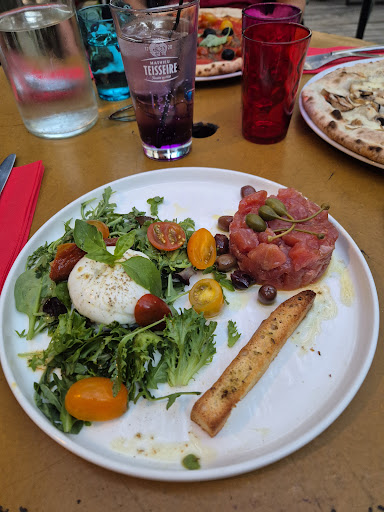 Read moreLes pizzas sont correctes. Manque de chance, ce n'est pas ce que j'avais choisi ! J'ai pris le plat du jour : spaghettis avec des tomates cerises, saumon, et parmesan, et d'autres choses qui avaient l'air très sympa dans la description... ... Alors... C'était bon, mais les tiges des tomates cerises dans la bouche à chaque bouchée c'était très moyen... Mais le plus gros problème était dans l'assiette : Une assiette très grande pour une toute petite quantité... Très peu de spaghettis (dommage pour un plat de pâtes), peu de saumon... Peu de tout ! Je suis vraiment resté sur ma faim ! Ça aurait mérité 3 fois plus de pâtes, idem pour le saumon, c'est vous dire... ou alors que ce soit signalé comme plat de régime... ou bien que ce soit proposé comme entrée ! Du coup, heureusement que ma copine n'a pas pu finir sa pizza, qu'il y avait du pain à table, et que le dessert que j'ai choisi était correct (un tiramisu).