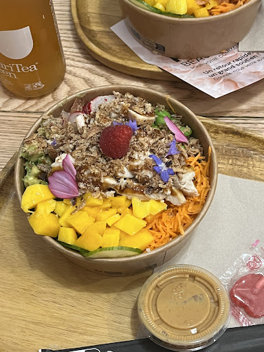 Ce qui distingue vraiment ce restaurant, c'est la variété impressionnante d'options de personnalisation. Vous pouvez choisir votre base (riz, quinoa, ou lentille), votre protéine (j'adore le saumon et la crevette), et une multitude de garnitures pour créer un bol qui correspond parfaitement à vos goûts.