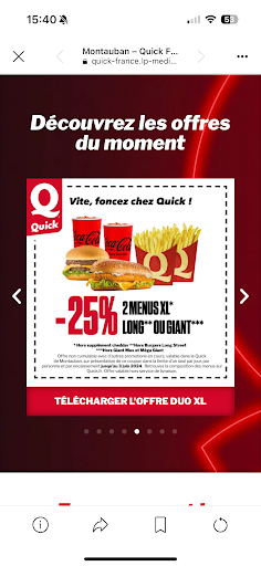 Ce restaurant ne reflĂšte en rien la qualitĂ© de service que jâai pu retrouver dans dâautres Quick, bien mieux organisĂ©s et plus professionnels. SURTOUT NE ME REPONDEZ PAS AVEC VOS MESSAGES "BATEAU" D'EXCUSES QUI NE SERVENT A RIEN CAR CE GENRE DE PROBLEME QUE JE SIGNALE DURE DEPUIS PLUSIEURS MOIS ET DEPUIS AUCUNE AMELIORATION DANS...