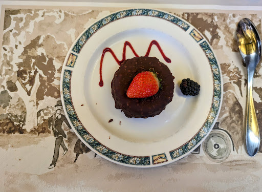 Nous avons opté pour les suggestions du jour dont le menu à 21€, entrée, plat, dessert, boisson et café ou thé... Franchement complet et pour un prix raisonnable car très complet. Concernant les plats c'était très bon, bruschetta en entrée, cabillaud pané avec purée, gâteau de semoule... Nous avons trouvé tout cela excellent et franchement c'est fait maison ça c'est une certitude. Nous avons été servis très vite aussi. En résumé rien à redire, si nous revenons au musée nous remangerons ici, manger au milieu des autos exposées est un vrai plaisir autant que ce qui vous est...