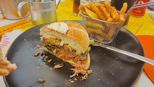 Une immense salle qui fait un peu réfectoire et guère plus de trois tables occupées. Le service est attentif mais très autoritaire (un vrai sergent major, cette patronne! me suis-je dit...) La carte est plaisante et propose de la cuisine maison. Tous les plats avaient un accompagnement identique, quelques frites larges parmi un monceau de pommes dauphine, dont l'huile aurait dû être changée: ce goût nous est resté sur l'estomac. Un burger énorme dans un bagel hélas tout sec. Deux d'entre nous ont choisi le poisson, un filet cuit et recuit tout desséché aux bords carbonisés pleins d'arêtes. Quel dommage. La pièce de viande rouge, mal cuite et dure à couper, n'a pas eu plus de succès. C'est tellement copieux que ça fait tambouille en dépit des efforts de présentation. Dessert: glaces dures comme du béton. Pas cher, pas terrible, pas recommandé....