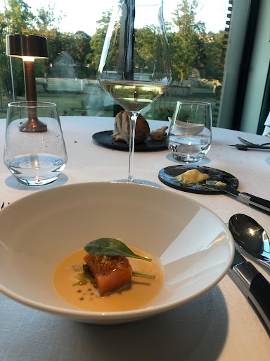 Read moreGlobalement une très bonne expérience. La vue face à la grande baie vitrée est vraiment agréable. Les tables plus en retrait sont un peu sympathiques. Le principe de choisir à l'aveugle entre 3 menus différents en se basant uniquement sur le prix est... Déroutant et assez peu agréable. C'est d'ailleurs ce qui fait perdre une étoile à ma note. Nous avions fait précédemment des restaurants gastronomiques proposant un menu surprise, et ce n'est absolument pas un problème puisqu'il n'y a qu'un menu de toute façon... Là le choix à l'aveugle en se basant sur le prix est compliqué ... Et très clairement, si j'avais su la composition des menus, mon choix aurait été différent... C'est décevant.. d'autant plus qu'à la fin nous repartons avec une carte avec les menus imprimés. Si seulement on nous l'avait donné avant le repas et non à la fin... Les plats sont très bons, même si pour beaucoup très axés autour de la viande ou du poisson. Contrairement à ce que nous avons pu lire dans d'autres commentaires, les portions sont plus que suffisantes, en tout cas avec le menu en 10 plats. Le service est quant à lui formidable, et mériterait à lui seul 5 étoiles. Pas trop guindés, toujours souriant, chaleureux, et avec beaucoup d'humour et attentionnée. Même si tout le côté marketing tourné autour du local et du bucolique en nommant chaque fournisseur par son prénom et en insistant sur le côté pittoresque avec diverses anecdotes est un poil théâtrale. Mais c'est un parti pris, et je suis certaine que cela plaît à beaucoup de monde. Pour autant, et c'est le plus important, nous nous sommes régalés et avons passé une très...