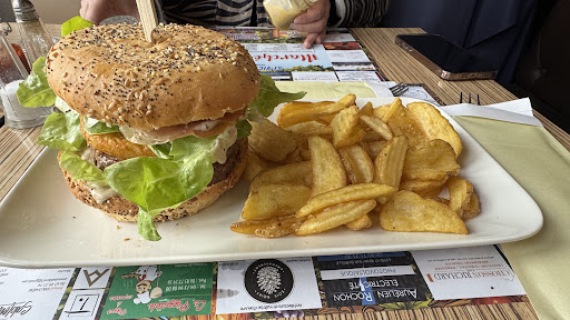 Je mets que 5 étoiles de partout car malheureusement on ne peut pas en mettre plus. Pour faire simple, je suis un fada de bruger, et je n'ai jamais manger un hamburger aussi bon de ma vie que celui-ci omgggg 🤤🤤, j'y suis retournée le lendemain pour le remanger ahah (j'aurais bien manger le soir mais je dois repartir malheureusement). La cuisine est excellente !!! Deplus !!! Elle est copieuse !! Moi qui mange pour 10 habituellement, la j'ai été rassasié !!!! Enfin !!! Enfin un vrai restaurant avec de vrai plat et de la vrai nourriture !!!!!! Merciii infiniment ça fait vraiment plaisir de voir un restaurant comme ça !! Et de manger ici !! Parlons du service, les personnes qui tiennent ce bar restaurant sont vraiment sympas !!!! Super accueillant, ils transmettent la joie de vivre ahah !!! On se sens comme chez nous ou chez un ami ahah, on se sent bien et on à envie de rigoler !! Un vrai plaisir de venir au Bidule !!! Et l'ambiance, ahhh l'ambiance !!!!! Des sons de foliiiee j'ai trop kiffé !!!! Deplus ils faisaient également attention, ils adaptent la musique en fonction des gens qu'ils y a donc c'est vraiment, vraiment bien !! Le décor et trop fun !! Merciii beaucoup, ça été un vrai plaisir de venir manger ici (je vous écris de la table ou je mange encore ahah) (ps le burger olonnais est divin 🤤🤤🤤🤤🤤🤤😭🤩🤩). Enfin bref, si jpouvais mettre les étoiles du ciels en note pour se restaurant je le ferais (mdr la disquette 🤣🤣), je recommande vraiment vraiment !!!!! Ne passez pas par Noirétable et ses alentours sans venir ici et gouter au passage un burger !! Vous y reviendrais Ah et j'oubliais !!!! Un point important !!!! C'est pas cher !!!!!!!!!! Dieu merciiii (disons qu'ailleurs c'est moins bien mais bien plus cher comme dirais la télé). Je ne dis pas ça pour que les gérants augmente le prix mais au contraire pour qu'il le garde, c'est bien parce-que c'était abordable que je suis revenu et que j'aimerais revenir encore et encore !!!!! Pour une grosse dizaine d'euros on passe un moment incroyable !!! En résumé: un nourriture très copieuse (le Hamburger c'est un gratte-ciel mdrr 😂), incroyablement bonne omgg 🤤, les personnes sont vraiment trop sympa, la déco et l'ambiance sont super et les prix hyper attractifs !!!!! (Ps je suis étudiant) Voilà bon, jvai finir de manger ahah, hâte de revenir...