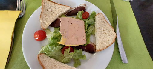 Read moreComment dire... heu très bof ! Une entrée jambon saucisson qui n'est pas de première jeunesse ! Pendant cette dégustation les beuglements de la propriétaire après ses serveurs entendus par la fenêtre de la terrasse, des frites pas assez cuites mais une viande correcte et correctement cuite. Nous avons pris du fromage correct mais laissé le verre pour le soda car on ne voyait pas au travers !! Nous avons donc évité le dessert mais avons tenté le café. Nous n'aurions pas dû ;) Bref le seul côté sympa, c'est la gentillesse et le professionnalisme de la petite serveuse qui semble faire son possible pour bien accueillir les clients (d'où la seconde étoile).... si vous avez le temps allez plus loin pour trouver forcement mieux ! (Ha j'oubliais, n'y allez pas non plus en vous disant que les toilettes seront mieux que sur l'autoroute car vous...